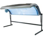 De fraai gestileerde titaanbronzen Onyx bestaat uit twee modellen, als combi of als hemel op statief. De lampen in de hemel meten 1.90 meter en bestrijken daardoor een groter bruiningsoppervlak, door het grotere bruiningsoppervlak heeft u meer comfort. De bollere vorm van de kap creert een soort tunneleffect dat zorgt voor een heerlijk ruimtelijk gevoel, dat samen met het Strip Reflector Systeem (SRS) achter de lampen zorgt voor een optimaal bruiningsrendement. De Onyx wordt standaard geleverd met twee ventilatoren en is standaard voorzien van een bodycooler die zorgt voor een aangename luchtstroom tijdens het bruinen. De cooler is traploos regelbaar. Met de overzichtelijke digitale display zijn de timer en de bodycooler eenvoudig te bedienen.