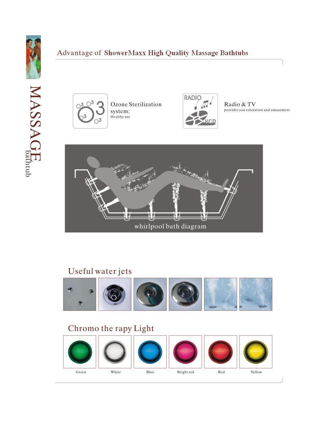 - Regelbare Hydro-massage jets verzekeren u van een volledige massage.