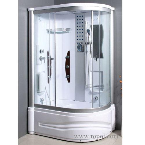 Geheel compleet incl.stoomgenerator, computer gestuurde massage douchecabine van antibacterieel sanitair acryl, deuren van gehard veiligheids glas tevens voorzien van radio, ingebouwde luidspreker, CD/telefoon aansluiting, ventilator, spiegel, handdouche, regendouche met verlichting en achtergrond sfeerverlichting, Te gebruiken als douche, massagedouche, stoomcabine cq turks stoombad. Optioneel is een voetmassage-unit leverbaar. |